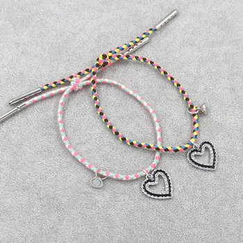 Kim Cương-dát Hình Trái Tim Mặt Dây Chuyền Và Đầy Màu Sắc Dệt Sợi Dây Thừng Vòng Đeo Tay Thiết Lập Thời Trang Chuỗi Vòng Đeo Tay Với Nam Châm Bóng