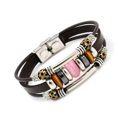 Phong Cách Dân tộc Đồ Trang Sức Thép Không Gỉ Khóa Đa-Hai Lớp Da Màu Hồng Opal Đính Cườm Vòng Đeo Tay Cho Phụ Nữ