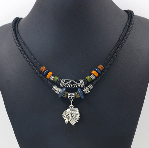 Vòng Cổ Phong Cách Dân Tộc Hạt Dây Da Có Thể Điều Chỉnh Kích Thước Vòng Cổ Mặt Dây Chuyền Ấn Độ Hợp Kim Bạc Cổ Đại
